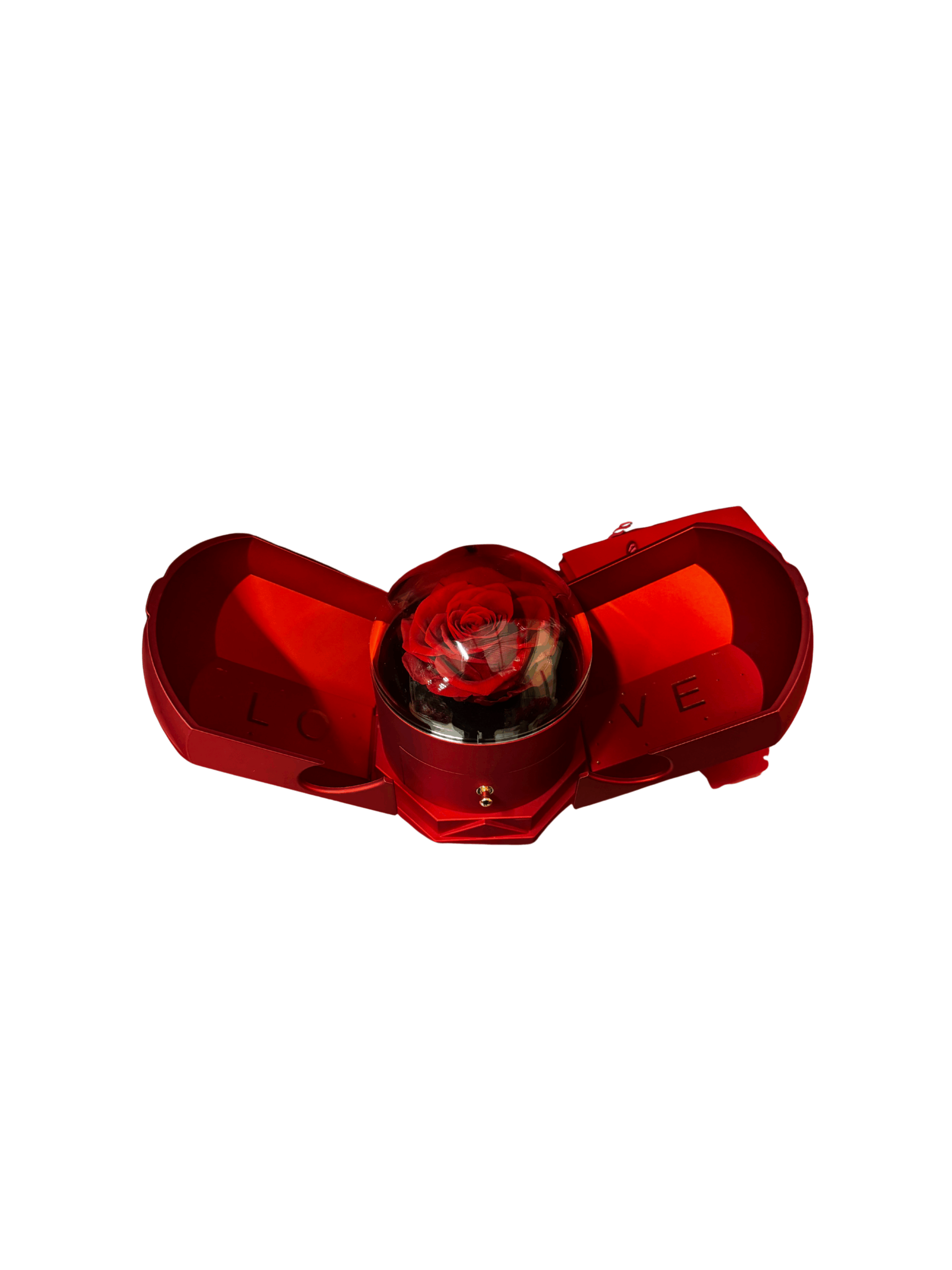 La rose naturelle préservée conserve sa couleur intense et sa fraîcheur pendant plusieurs années sans entretien. La boîte cœur rouge, dotée de compartiments intérieurs, permet de ranger bijoux ou petits accessoires, offrant ainsi une double fonctionnalité décorative et pratique. Le collier inclus renforce l’expérience cadeau et la valeur perçue du produit.