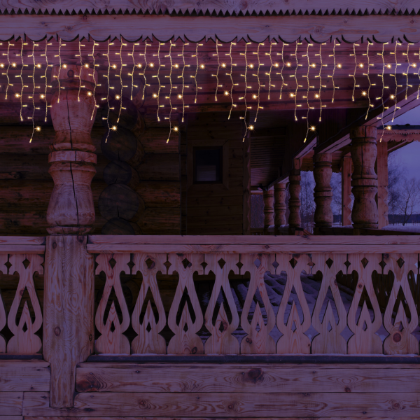 Stalactite IPLR-H 228 MaxiLED BLANC CHAUD Ø7mm, Série LED PL (PML) Professional 2pins, Câble d'alimentation inclus, Prolongeable (Max 15 pcs / 3420 led / 45m), jeu de lumière automatique FlashLED Diamond (36F), 230V, IP67 utilisation en Extérieur, Câble en caoutchouc Blanc, Dimensions 1,5m+3xH0,9m (3x1m), Boîte luxe color (XPL Art. LEDF IPLR 228-H B).